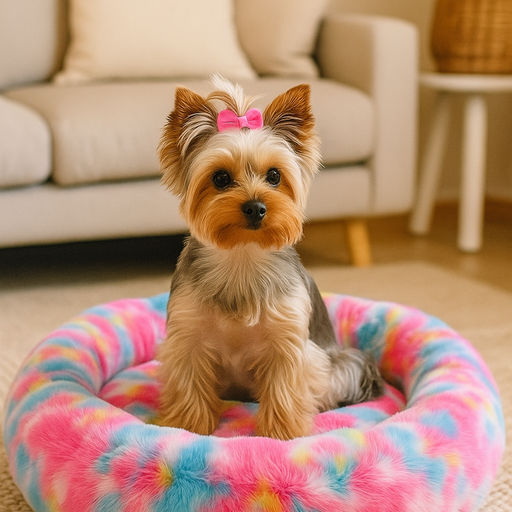 Nootie Donut Calming Cuddler Dog Bed – Rainbow Medium Plush Donut Bed (26" x 4.5") | Polyester Faux Fur + Polyfill | Hand & Machine Wash